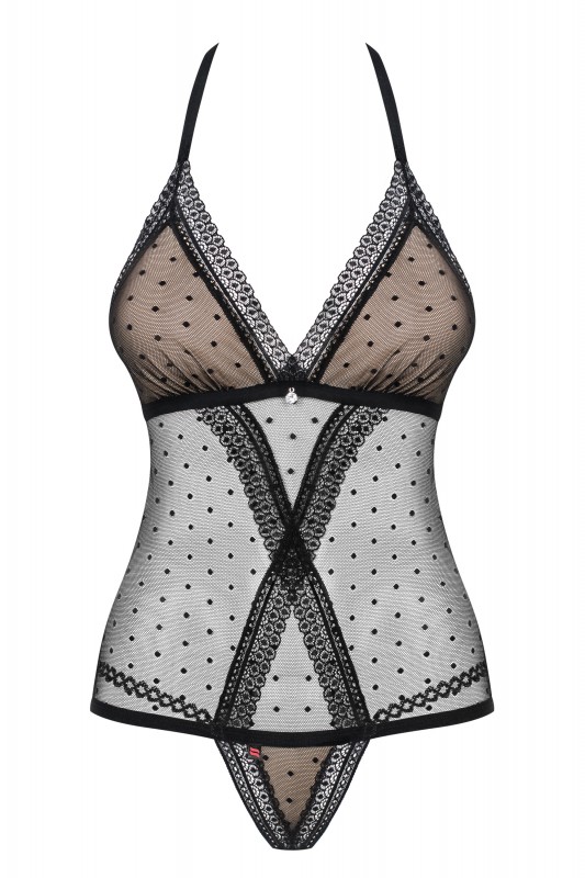 Боди "Obsessive" черное, в горошек, L/XL