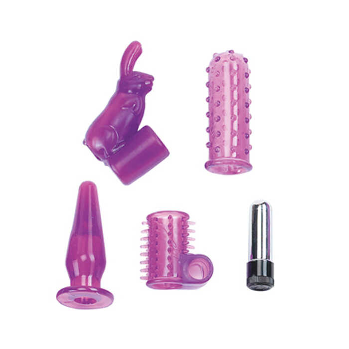 В комплект входит 4 различные насадки - анальная пробка, насадка на палец, насадка на палец с клиторальным отростком, эрекционное кольцо. Насадки имеют специальное отверстие для вибропули, что позволяет экспериментировать с ощущениями, создавая различные секс игрушки!